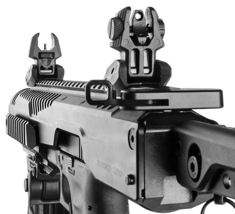 Pistols like the Jericho with a frame-mounted safety are a great choice for KPOS use. The KPOS includes folding backup sights and a sling. The standard version also includes a folding foregrip  safety and the Pathfinder version includes a handstop.