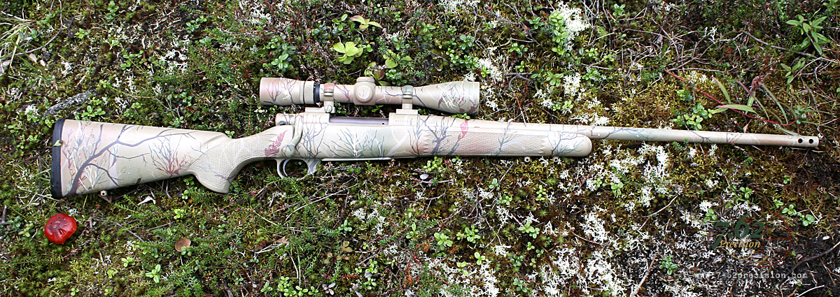 FN-FAL rifle with Enhanced Underbrush camo. Barrel and gas system parts coated with tan DuraHeat on this full-auto FAL. Click for more photos.