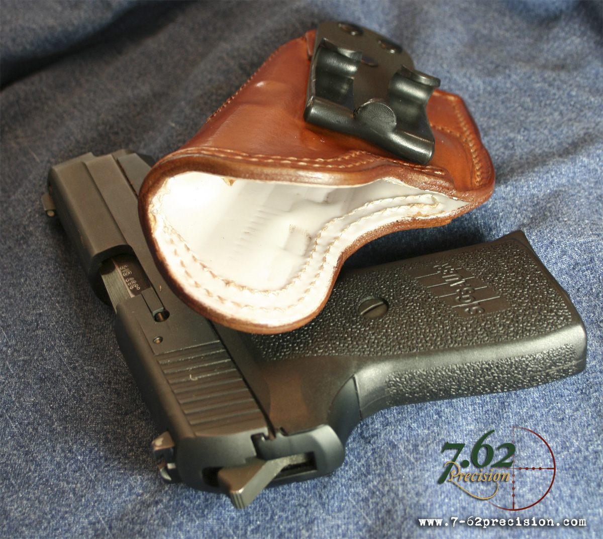 The Hidden Inner-Waistband Holster is available in a traditional smooth-side-out leather, hand-molded to each particular firearm model. This leather version is available with or without an Alpha Lining, which is a Teflon based material. The Alpha Lining protects the pistol’s finish and offers a smooth, consistent draw. No break-in period is needed for Alpha Lined holsters. For those who prefer non-leather holsters, the Hidden Inner-Waistband holster is also available in Kydex.